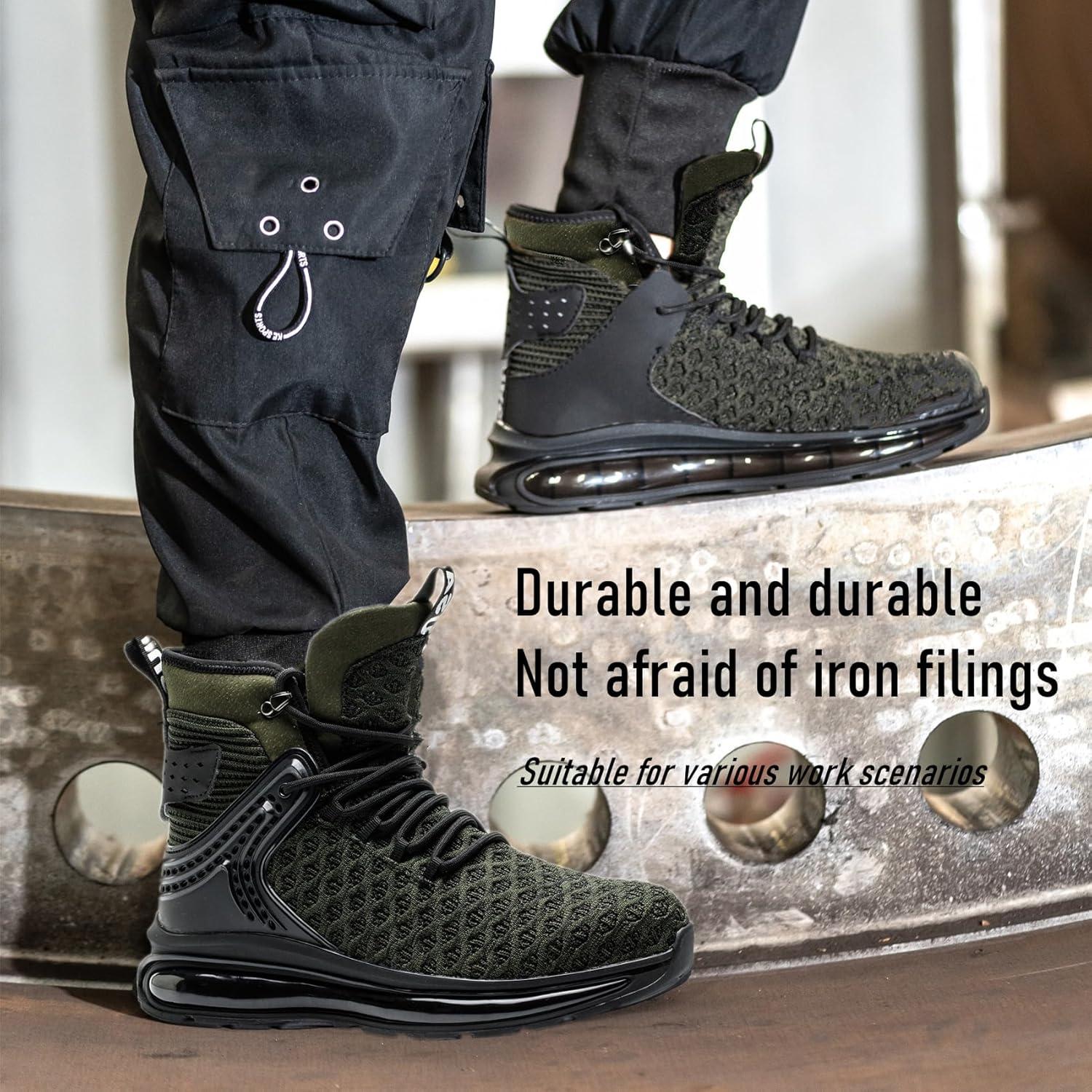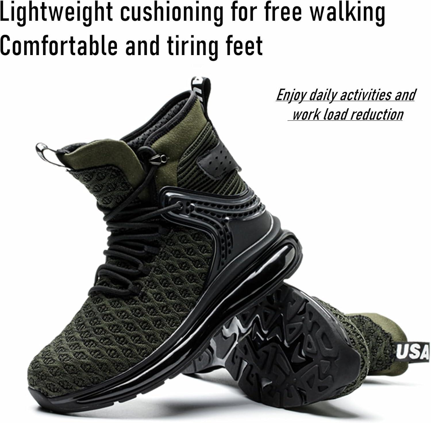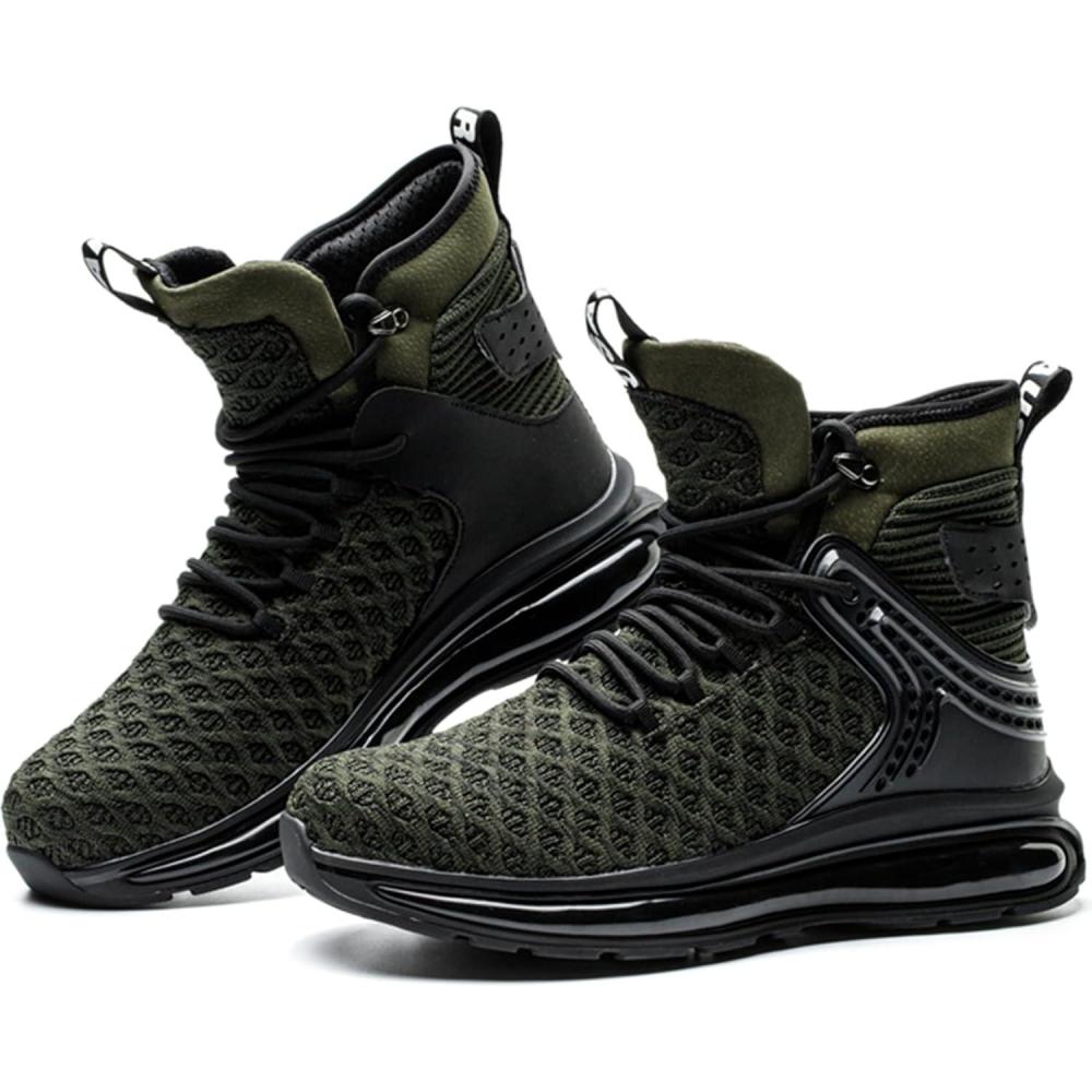 SYLPHID Men Steel Toe Sneakers Women Safety Shoes High top Work Shoe with Air Cushion Lightweight Breathable Puncture Proof(Green)